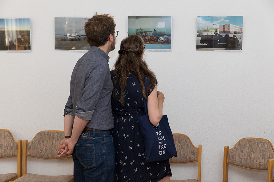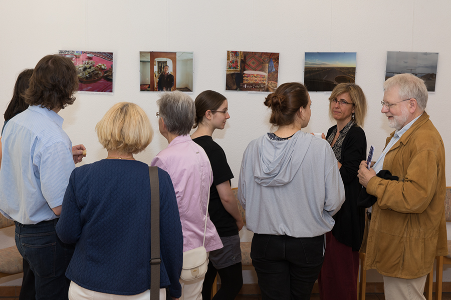 Zur Vernissage waren einige der Studierenden anwesend und erzählten von ihren Erlebnissen. Tanja Kapp, deren Fotos unter anderen zu sehen sind, zeigten den Reiseverlauf auf einer Landkarte. Sie stellten sich den Fragen der Besucherinnen und Besucher.