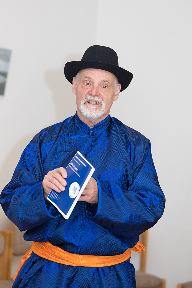Organisiert wurde die Ausstellung von Rentner Richard Lehmann. Er ist von der Mongolei begeistert und lernt als Gasthörer an der Humboldt-Universität die mongolische Sprache.