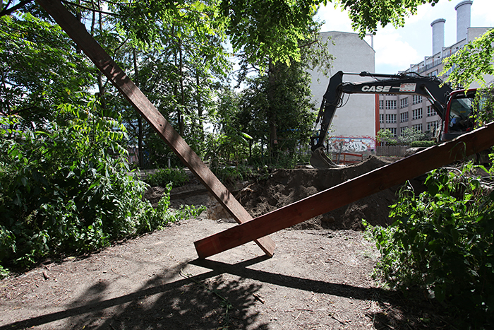 Der vorgesehene Weg, am Spreeufer entlang, endet abrupt. Ein Bauzaun steht quer zum Trampelpfad. Eine große ausgehobene Grube klafft vor uns. Der Bauarbeiter schüttelt den Kopf: „Hier geht es nicht weiter. Da hinten kommen Sie nicht durch.“ Die urbane Realität schiebt sich in das Kunstprojekt, welches sich mit Urbanität auseinandersetzt. DREAM CITIES oder: THE WASTE LAND ist der Prolog des Festivals CROSSING IDENTITIES - BEGINNERS, EXPERTS, HYBRIDS von Urban Nomads/Mongol Citiziens. Das Festival präsentiert vom 13. bis 15 Juni 2014 im Berliner Radialsystem V Kunst und Kultur der Mongolei im Dialog mit internationaler zeitgenössischer Kunstentwicklung. Internationale Künstlerteams setzen sich mit der sozialen Realität der mongolischen Städter auseinander. Fragen der transkulturellen Identität und modernen Nomadentums werden verhandelt. Dass dieses Festival „kein Ufo ist, sondern in der Umgebung des Radialsystems andockt und Verbindung herstellt“, erklärt die Kuratorin Berit Schuck. Sie hat zwei Outdoor-Parcours entwickelt, auf denen die Teilnehmenden sich jeweils zu zweit oder dritt auf einen insgesamt drei Stunden dauernden Weg machen. An insgesamt sechs Stationen wird jeweils bis zu 15 Minuten verweilt, um dann zur nächsten Station zu ziehen. Jede Station bietet ein eigenes Programm. Die Parcours wollen Orte moderner Nomadenkultur in Berlin aufzeigen. Auf einer Strecke geht es beispielsweise über das „Teepee Land“ am dem Radialsystem gegenüberliegenden Spreeufer. Dort leben Roma, Punks und Dauerurlauber in Zelten und Tipis inmitten des Stadtzentrums. An dieser Station gibt es einen Workshop im Tipi-Aufbau.