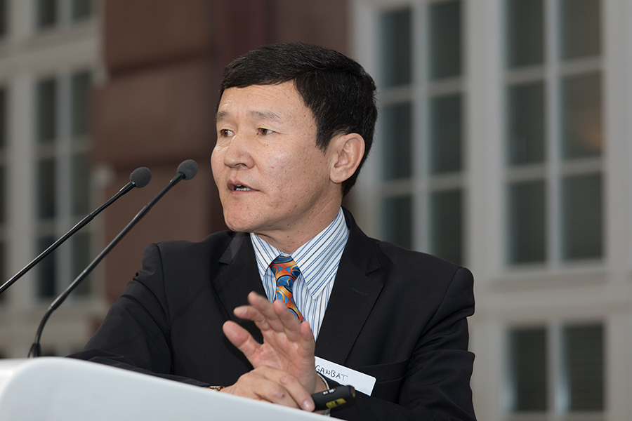 Auf die geo-politischen Entwicklungen in Zentralasien ging Dr. Stefan Hanselmann von der Deutschen Gesellschaft für Internationale Zusammenarbeit (GIZ) ein. Von ihm kam der Hinweis, die Mongolei nicht nur als einzelnen, kleinen Markt zu betrachten, sondern sie als Teil einer ganzen Region zu sehen. Die Mongolei ist Vertragspartner in mehreren Abkommen, welche die Staaten entlang der alten Seidenstraße bzw. die Nachbarstaaten abgeschlossen haben, um die Region zu entwickeln. Dies biete große Potenziale. Ginge es dabei doch um Bahn- und Straßenbauprojekte, um den Ausbau der IT-Infrastruktur, um Pipelines – und das alles in einem riesigen Korridor von China über Zentralasien und Russland.