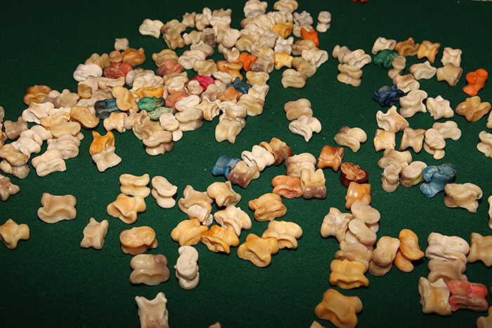 einem Tisch im Spielhaus Kokon lag eine große Menge dieser Knöchelchen, die