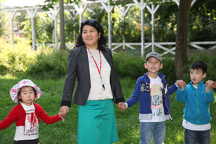 Seit einigen Jahren organisiert Alimaa Amgalan, die Vorsitzende des Maidar Vereins, mit den Mitgliedern dieses Kinderfest. In diesem Jahr freute sie sich über die rege Teilnahme und das tolle Wetter am Kindertag. Wichtig sei ihr, sagte sie, „dass die jungen Mongolen etwas über die Kultur und die Sprache ihrer Eltern lernen“.
