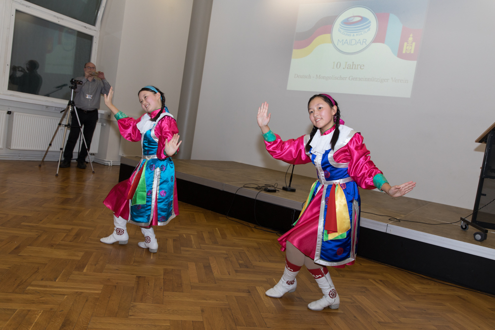 Vereinsmitglied Khishigdulam Krause berichtete aus der Arbeit. Der Verein sei aktiv, habe sich entwickelt und auch immer wieder neu erfunden. Denn das Engagement im Verein sei auch anstrengend und kräftezehrend. „Wir alle haben gelernt: Netzwerken, Projektanträge stellen, Fördergelder beantragen“, beschrieb sie die Entwicklung. Geholfen hätte dabei die Kooperation im Dachverband moveGLOBAL, ein Berliner Verband für migrantisch-diasporische Organisationen.Dessen Geschäftsführerin Lucia Muriel gratulierte zum Jubiläum und lobte den „unschätzbaren Beitrag“ der Maidar-Lehrerinnen, die dafür sorgten, dass die in Berlin aufwachsenden Kinder ihre mongolische Heimat nicht vergäßen.