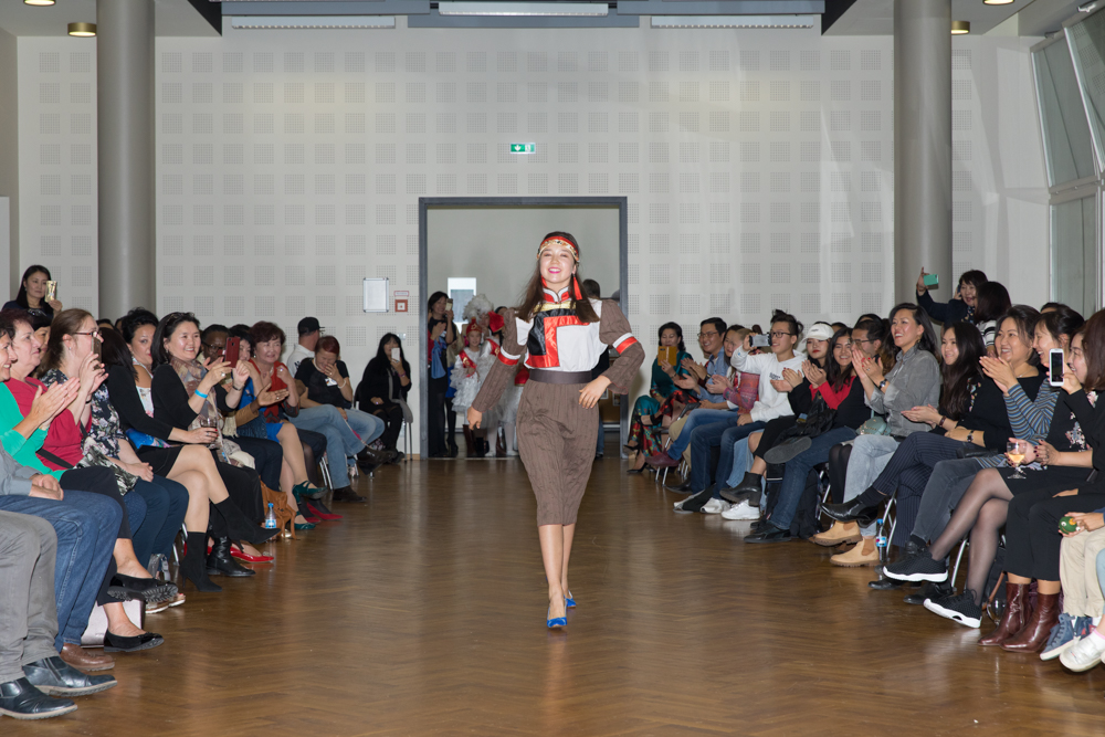 Ein Highlight des Festabends war die Modenschau. Vereinsmitglied Oyunaa Choirog entwirft und näht in ihrer Freizeit Kleider und Kostüme für die Schüler/innen der mongolischen Schule zu verschiedenen Anlässen. Alle diese Stücke wurden an dem Abend von Schüler/innen präsentiert und erhielten begeisterten Beifall vom Publikum.