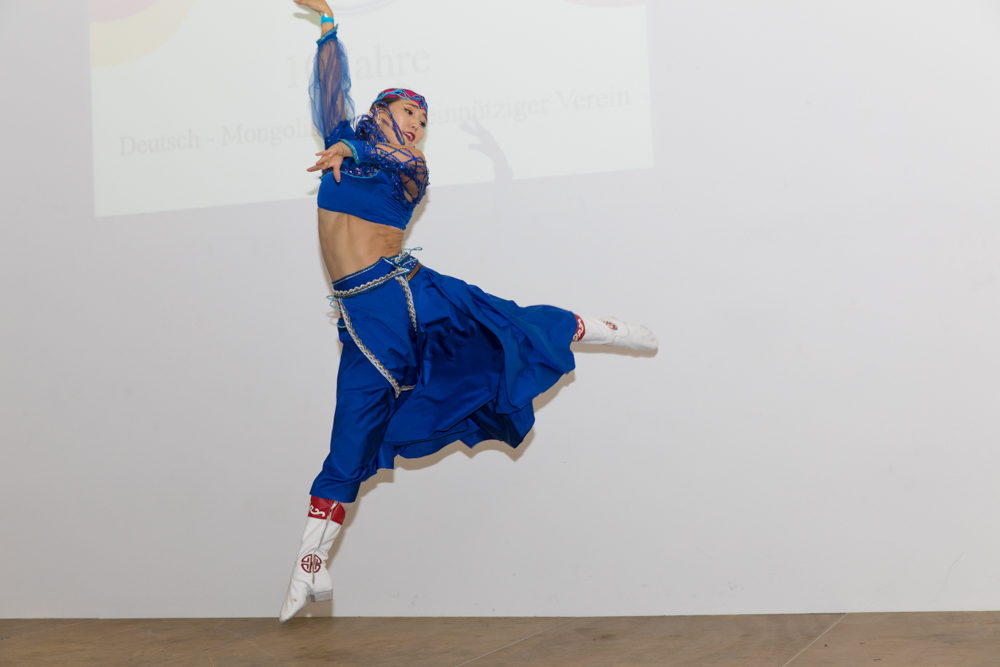 Ein Schwerpunkt der Vereinsarbeit ist die Pflege der mongolischen Sprache und Kultur bei in Deutschland lebenden Kindern von Eltern, die aus der Mongolei stammen. Ehrenamtliche Muttersprachlerinnen unterrichten wöchentlich in ihrer Freizeit am Sonntag zwei Stunden Mongolisch. Neben Lesen und Schreiben vermitteln sie Wissen über Traditionen und Kultur. Dazu organisieren die Frauen Veranstaltungen mit Wissenschaftler/innen und Künstler/innen. Die Tänzerin Shinee unterrichtet in der Schule traditionellen mongolischen Tanz und kombiniert ihn mit moderner Musik. Die Kinder haben dabei sehr viel Spaß. Das zeigten einige von ihnen, in dem sie Tänze auf der Feier aufführten. Auch Shinee gab eine Vorführung ihrer beeindruckenden Kunst.