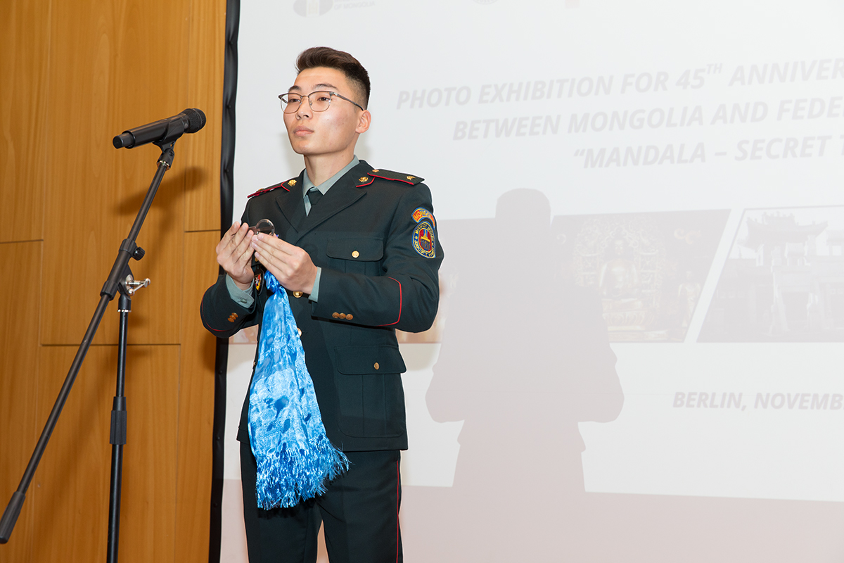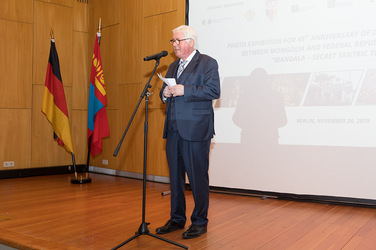 Im Anschluss an die Konferenz eröffnete der Botschafter der Mongolei, Dr. phil. Damba Ganbat die Ausstellung „Mandala – Secret Tantric Temple“ mit über 20 großformatigen Fotografien des Choijin Lama Temple Museums. Sie geben einen einzigartigen Einblick in die religiöse Geschichte der Mongolei.