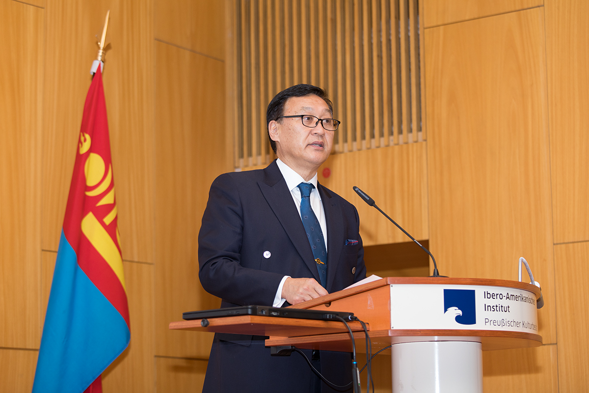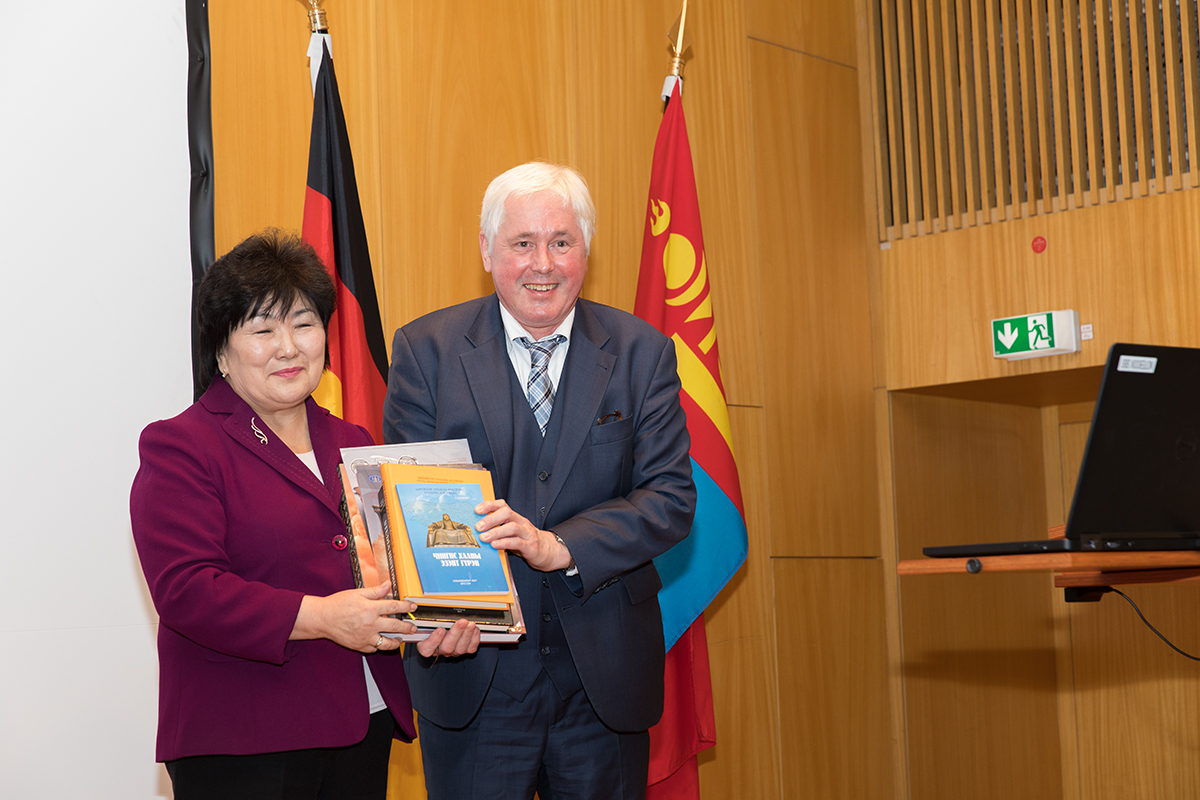 Botschafter Damba Ganbat spannte einen weiten geschichtlichen Bogen, indem er in seiner Rede erwähnte, dass bereits Alexander von Humboldt als deutscher Forscher während seiner Russland-Reise die Region der heutigen Mongolei bereiste. Er wies darauf hin, dass es wichtig sei, die nächste Generation der Mongolist/innen auszubilden.