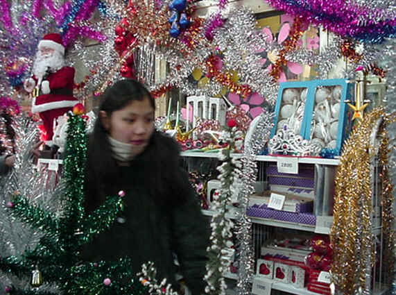 die bunte Welt der Glaskugeln und Weihnachtsmänner, aber Baigalmaa denkt nicht daran, zu