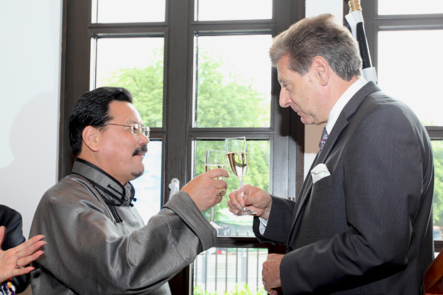 Nachdem der Botschafter und der Bundestagsvizepräsident miteinander anstießen, wurde für die zahlreichen Gäste das Buffet eröffnet."