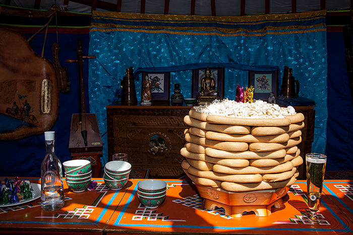 Verteidigungsminister Dashdemberel Bat-Erdene beim Khuushuur-Essen