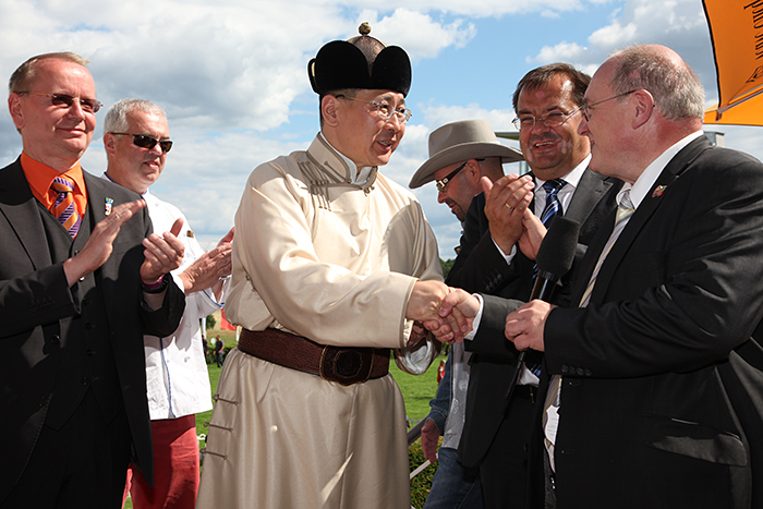 Preisverleihung des Preises des Botschafters der Mongolei an Mario Hofer (Gestüt