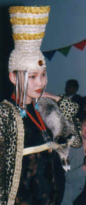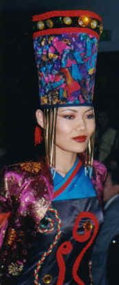 Den stärksten Eindruck auf dem anschließenden Mongolischen Abend hinterließen fünf Frauen: die Mannequins von Njamsuren Sojolmaa, der Präsidentin der Mongolian National Designers Association. Für Augen, die an den hochgeschlossenen, langärmeligen und Figuren verschleiernden Deel gewöhnt sind, war das eine Überraschung durch und durch. Beim mongolischen Auftritt auf der EXPO 2000 werden die gertenschlanken Mädels wieder Furore machen, und das bestimmt unter besseren Bedingungen. Denn es fehlte im Europa-Saal von Halle 7 ein Mode-Moderator, so dass die Gäste nicht erfuhren, aus welchem Material die extravaganten Gewänder und Kopfbedeckungen und in welche Firmen sie hergestellt wurden. Der übliche Pferdekopfgeiger wurde diesmal ersetzt durch eine Schands-Spielerin, die dem einer Balalaika ähnlichen Instrument zauberhafte Folklore-Töne entlockte.