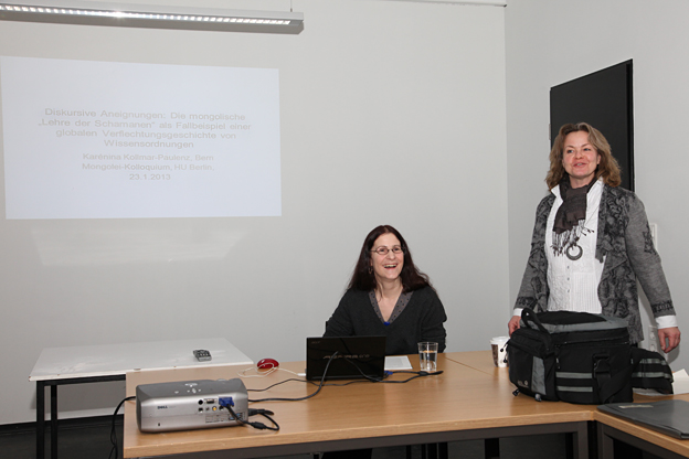 Der Titel ihres Vortrages lautete „Diskursive Aneignungen: Die mongolische ‚Lehre der Schamanen’ als Fallbeispiel einer globalen Verflechtungsgeschichte von Wissensordnungen“.