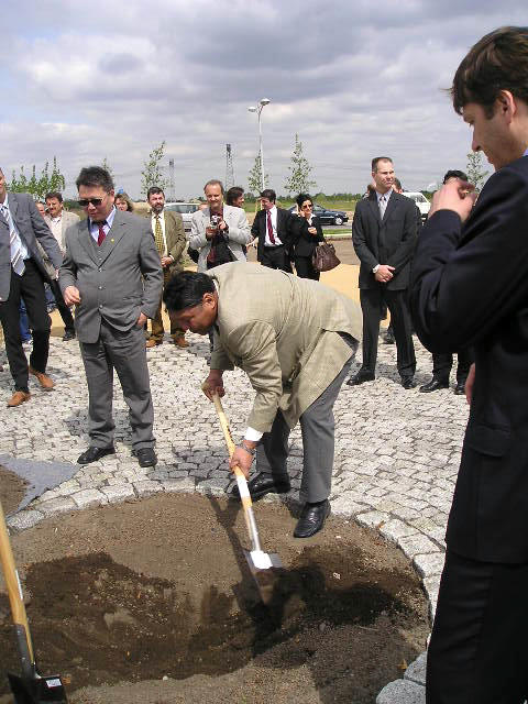 Neben dem "Hausherrn", Ortsteilbürgermeister J. Wolff und dem Gemeindebürgermeister Dr. U. Haase, griffen auch der Geschäftsträger der mongolischen Botschaft in Berlin, Yondon sowie der Kulturattache, Mandakhbileg, zur Schaufel, auf dass das junge Bäumchen mit genügend Erde zum Wachsen und Gedeihen versorgt werde.