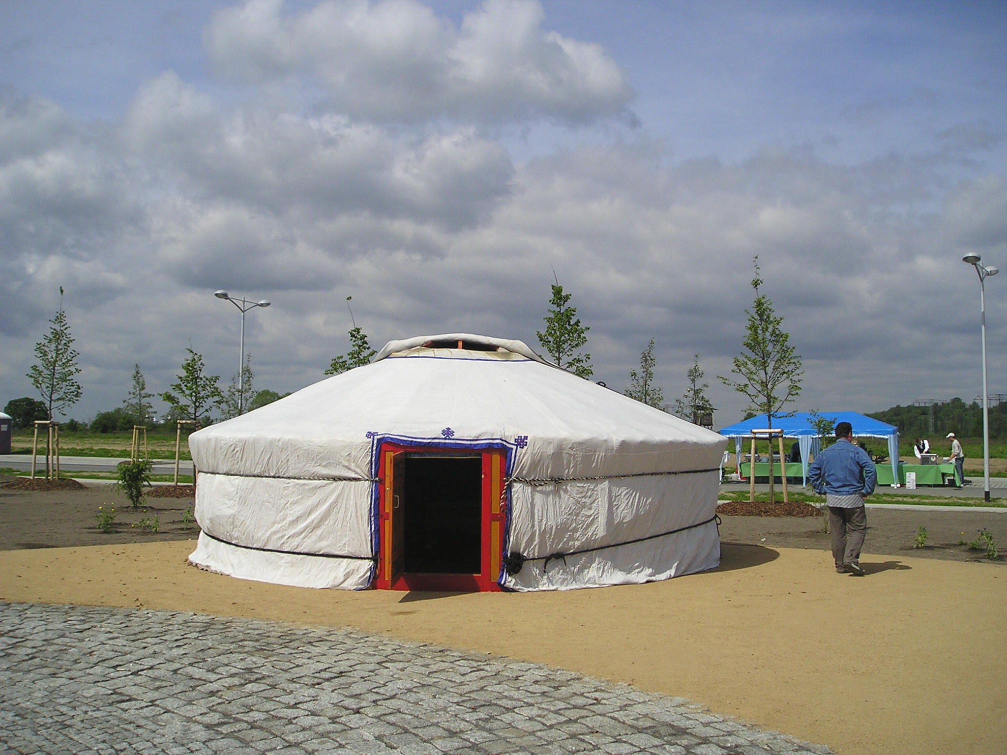 Bei strahlendem Sonnenschein und unter mongolischblauem Himmel fand am 14. Mai die feierliche Einweihung der neuen Gartenanlage statt. Schon von weitem zog die eigens für die Einweihungszeremonie aufgestellte Jurte, das runde Filzzelt der zentralasiatischen Nomaden (mong.: Ger) die Blicke auf sich. Jeder der Gäste - vom Vertreter der Landesregierung in Potsdam bis hin zum Repräsentanten der SP Projektentwicklung Schönefeld GmbH & Co. KG - wollte einmal seinen Fuß über die Schwelle dieser exotischen Behausung setzen.