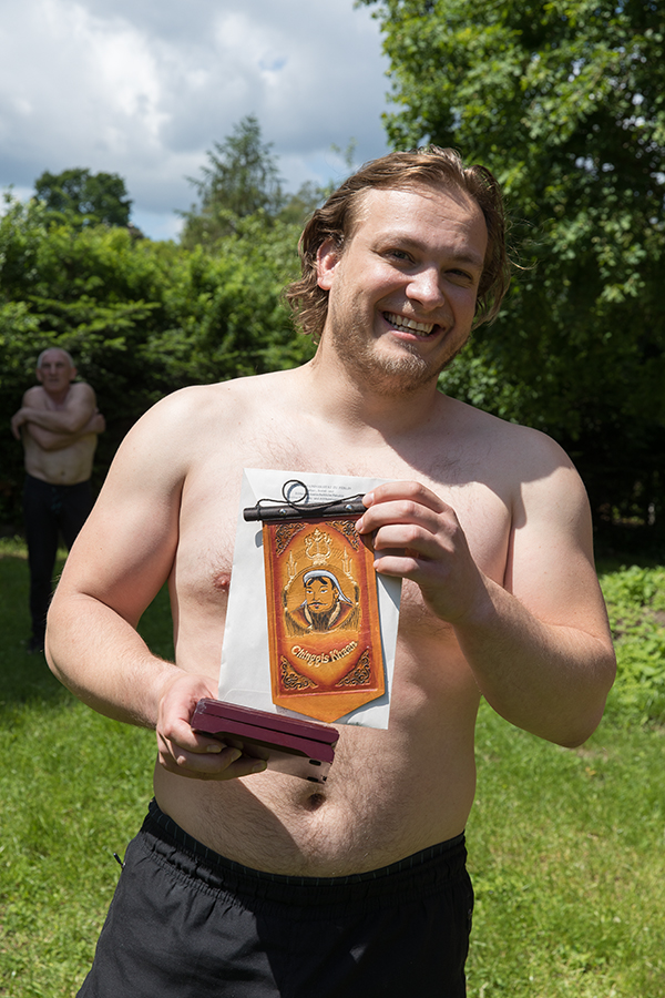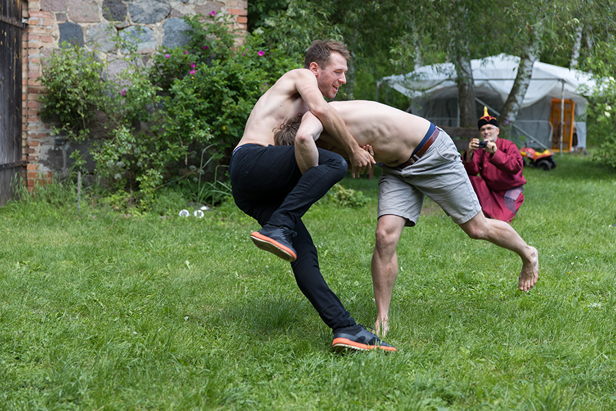 Im Ger (mongolische Jurte) wurden Vorträge über die Symbolik und über die Herstellung des Gers gehalten. Am Lagerfeuer lauschte das Publikum den Erzählungen aus Mongoleireisen. Der zweite Tag war zwei der drei Sportarten des Naadam gewidmet: Ringen und Bogenschießen. Die Männer rangen, der mongolischen Tradition entsprechend, mit nacktem Oberkörper vor dem begeistertem Publikum. Auch ein trainierter, polnischer Dorfbewohner trat zum Ringkampf mit an. Über allen wehte die mongolische Flagge, um die der jeweilige Sieger seinen Adlertanz vollführte.