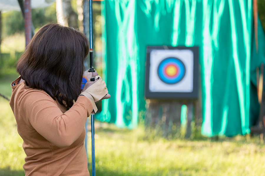 Am Bogenschießen nahmen Männer und Frauen gleichermaßen teil. Gewonnen hat hierbei Richard Lehmann, der als Ältester mit Ruhe und Konzentration auf die Scheibe zielte.