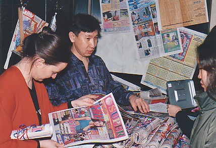 Doch das könnte sich ändern. SUPER-Journalist Batjargal hat zum 10. Jahrestag der freien mongolischen Presse schon mal 2500 Zeitungen einfliegen lassen. Und um die unter die Leute zu bringen, hatten er und sein Partner, der Geschäftsmann N. Nyamtsooj eine pfiffige Idee: Sie machten aus der Cafe-Bar „Walden“ im Berliner Prenzlauer Berg für eine Nacht einen Zeitungskiosk und feierten mit rund 200 Landsleuten eben diesen Jahrestag.
