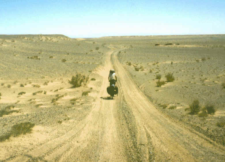 Zuletzt noch einige Bemerkungen zum mongolischen "Strassen"zustand und dem Fahrrad als Transportmittel: Drei Viertel der Wege bezeichnen wir als mehr oder weniger gut mit dem Velo befahrbar. Der restliche, schwer bis nicht befahrbare Viertel verteilt sich auf die gesamte Strecke. Am harmlosesten und am einfachsten mit dem Fahrrad zu bereisen ist das Gebiet nördlich vom Hangay-Gebirge. Bei längeren Reisen (ab etwa 1500 km) treten allerdings auch beim besten und/oder teuersten Material Probleme auf, so dass viel technisches Geschick, Reparaturmaterial, Werkzeug und eine Menge Improvisierfähigkeiten erforderlich sind. Der Juni und die erste Hälfte des Juli sind klimatisch am angenehmsten. Die Steinwüsten und Gebirge entpuppten sich als anspruchsvoll, wobei die letzteren aber gleichzeitig auch besonders schön zu befahren sind. Die kalten Jahreszeiten möchten wir nur erfahrenen Trekkern empfehlen. Der Meinung, dass dieses Land zu gross, zu eintönig oder zu langweilig sei, um es per Velo zu entdecken, können wir absolut nicht beipflichten. Es ist uns zu keiner Zeit langweilig geworden! Das Auge spezialisiert sich bald auf kleine wichtige Dinge und ungewöhnliche Veränderungen, welche das Velofahren in dieser Landschaft irrsinnig interessant machen. Wir haben uns sehr häufig gefühlt, als ob uns Flügel gewachsen wären.