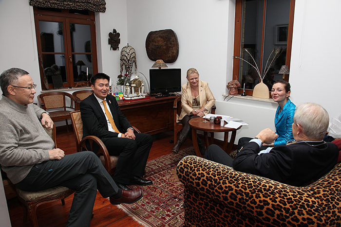 Die Vernissage fand zünftig mongolisch statt: gleich an drei Tagen gab es Veranstaltungen im Rahmen der Eröffnungsfeierlichkeiten. Dazu zählten ein Konzert von Hosoo, eine Tanzaufführung und eine Filmvorführung. Der Botschafter der Mongolei, Ts. Bolor, hielt die Eröffnungsrede. Er wies auf die Wichtigkeit der Kunst in der Völkerverständigung hin. Für die Kuratorin Katja Vedder steht fest: „Es sind nicht nur die Werke an der Wand, denn da steht auch immer ein Mensch dahinter“. Die in Deutschland lebenden Künstler waren zur Vernissage anwesend und konnten zu ihren Bildern befragt werden. Otgo präsentierte sein über sechs Meter langes und zwei Meter hohes Gemälde an einer kompletten Wand der Villa.
