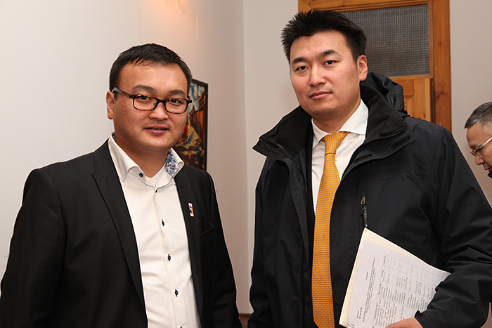 v.l.n.r.: Künstler Gan-Erdene Tsend und der Kulturattaché der mongolischen
