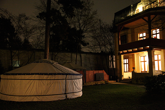 Die ausgestellten Bilder setzen sich zu der wohnlichen Ausstattung der Räume in Spannung und Kontrast. Auf zwei Etagen können Besucher die Werke unterschiedlicher Stile und Ausdrucksweisen entdecken. Im Garten vor dem Haus steht ein Ger. An den Eröffnungstagen gab es dort Milchtee, Archi und Filmvorführungen. Enkhtuul Bock versorgte die Gäste mit mongolischen Speisen aus ihrem Imbisswagen. Für die nächste Zeit sind Märchentage für Berliner Schulen aus der Umgebung der Villa Kult geplant. Die Kinder können dann im runden Ger sitzen und mongolischen Märchen lauschen.