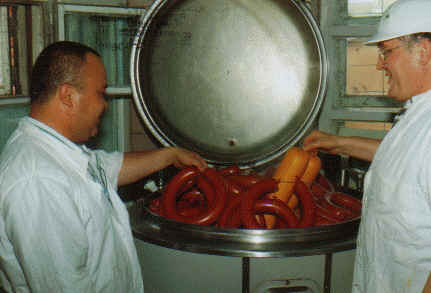 Wurstherstellung, Kühl- und Räucherkammern und andere Ausrüstungen. "Wir