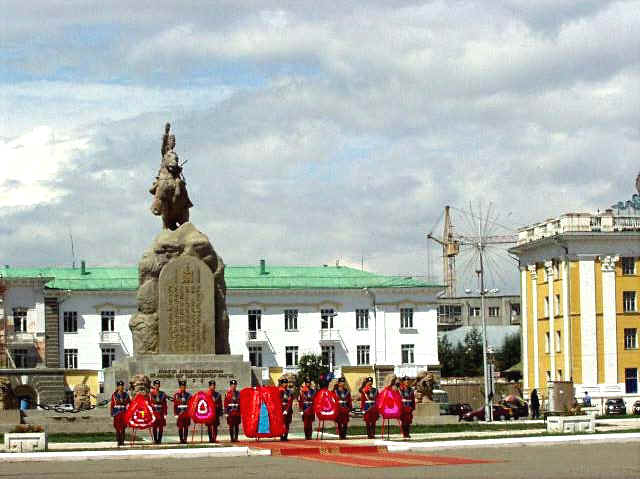 Begonnen hatte das Naadamfest mit Kranzniederlegungen vor dem Sukhbaatardenkmal