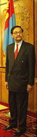 Botschafter 37 mongolische Diplomaten können sich mit dem Titel „Außerordentlicher und Bevollmächtigter Botschafter der Mongolei" schmücken. Zu ihnen zählen der Minister für Auswärtige Angelegenheiten, L. Erdenechuluun sowie der Leiter des Presse- und Informationsdienstes im Außenministerium, J. Ganibal. |