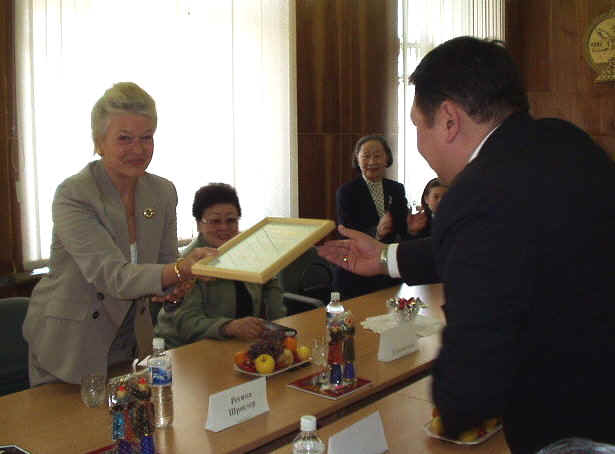 M. Enkhbold überreicht R. Schröder die Dankesurkunde
