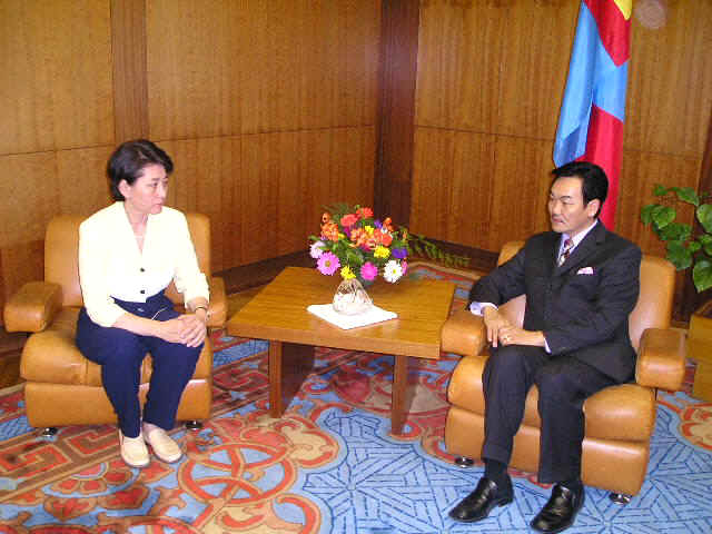 Präsident Bagabandi im Gespräch mit S. Oyun