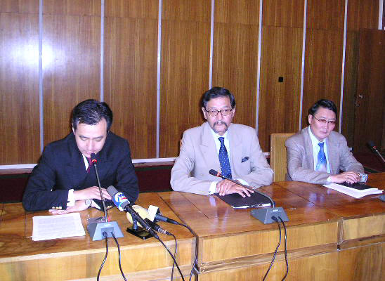 An der Pressekonferenz D. Tsogtbaatar, außenpolitischer Berater des Präsidenten,