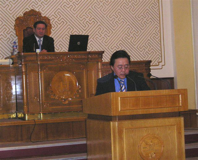 N. Enkhbayar, Ts. Elbegdorj am Rednerpult