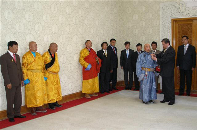 Im Kleinen Soyombo-Saal überreicht Präsident Enkhbayar an verdienstvolle Bürger