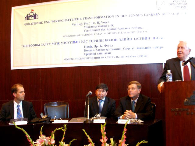V. r. B. Vogel, Botschafter U. Dreesen, Prof. Ts. Gantsog, Rektor der