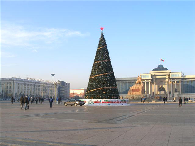 Neujahrsbaum auf dem Sukhbaatarplatz in Ulaanbaatar. 19.12.08