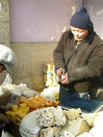 Butter, Fett mit Rosinen, Käse, Aaruul. Unverzichtbar für den Tsagaan-Sar-Tisch.