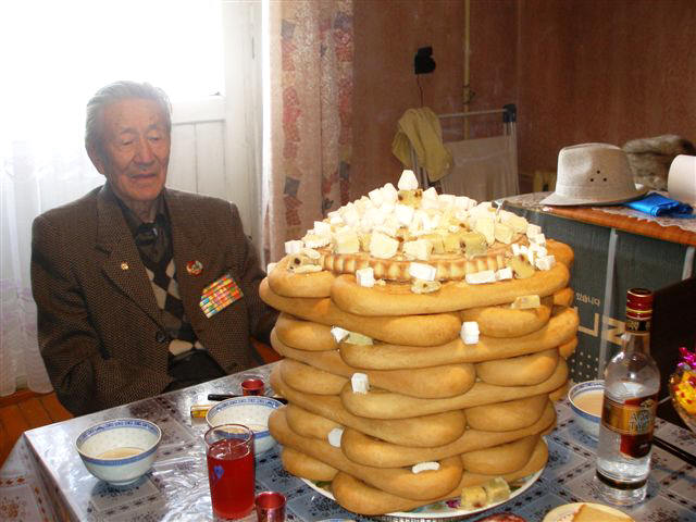 Dem 90-jährigen verdienstvollen Journalisten Namsrai steht ein Neun Etagen Ul
