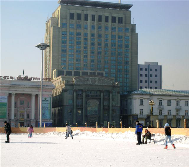 Eislaufen vor der mongolischen Börse