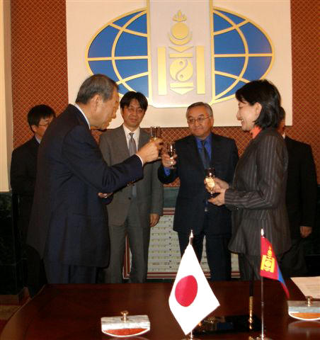 mongolische Außenministerin, S. Oyun und der japanische Botschafter in der