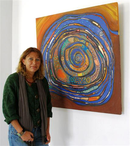 Rita Walle neben ihrem Lieblingsbild Lebenskreis. 30.05.08