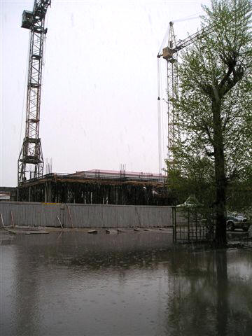 Im Zentrum des Platzes werden fünf riesige Lotosblumen aufgestellt. Beim
