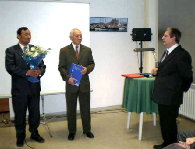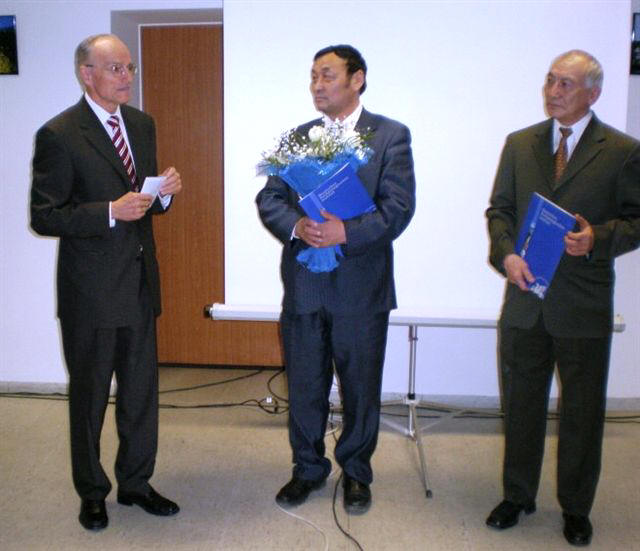 V. l. Prof. Tseveendorj, Dr. Bayar, Prof. Hüttel. 04.03.08. Foto K. Bormann