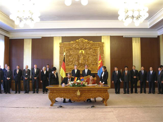 Köhler in der Mongolei unterzeichneten die mongolische Außenministerin S. Oyun