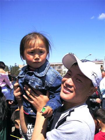 Vater des Kindes, der Bronzemedaillengewinner von Athen, Kh. Tsagaanbaatar,