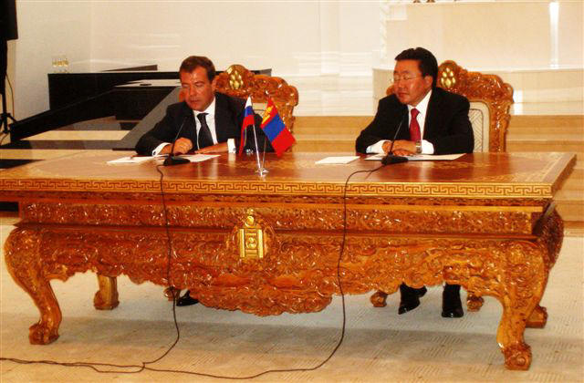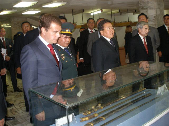 Medvedev und Elbegdorj besichtigen die Khalkhyn-Gol-Ausstellung