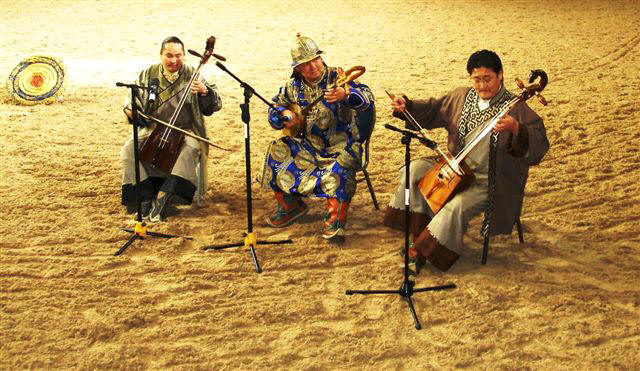 Mongolische Pferdekopfgeigenspieler, Langlied- und Obertonsänger der Gruppen