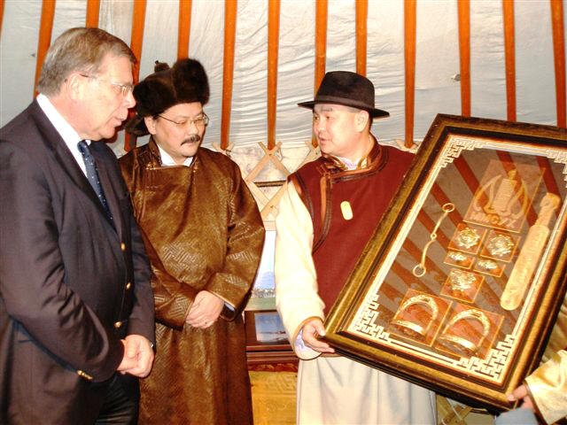 Verbandspräsidenten und Vizeministerpräsidenten M. Enkhbold, er hatte auch ein
