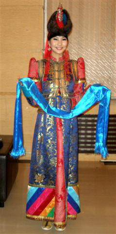 Ballettmusik, wobei sie von einer Parade mongolischer Models in farbenprächtigen