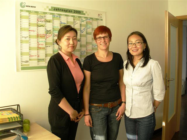 E. Agiima, H. Michel und M.Mandakh in ihren neuen Büroräumen. 28.09.09
